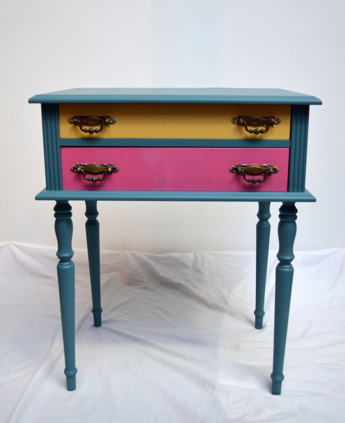El cliente tenía la mesilla de noche olvidada en un rincón de la vivienda entre otros muchos muebles pasados de moda. Se les dio un aire renovado a todos ellos. Esta mesilla por ejemplo, se ubicó en la decoración de la habitación de la pequeña de la casa. Con un poco de cariño y toques de color, podemos dar una segunda oportunidad a este tipo de mobiliario.